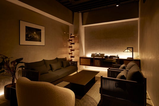 <TONES SALON> 照明演出による陰と陽、そこに音で満たされた外部と遮断された個室空間。お仲間やお一人で、とっておきの上質なお時間をお過ごしいただけます。ラウンジで提供しますお酒・軽食も召し上がっていただけます。