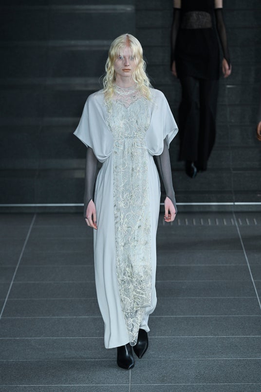 定番アイテムのFramed flower lace dressでは、「魅力」を花言葉に持つ「スカビオサ」をモチーフに採用したレース。