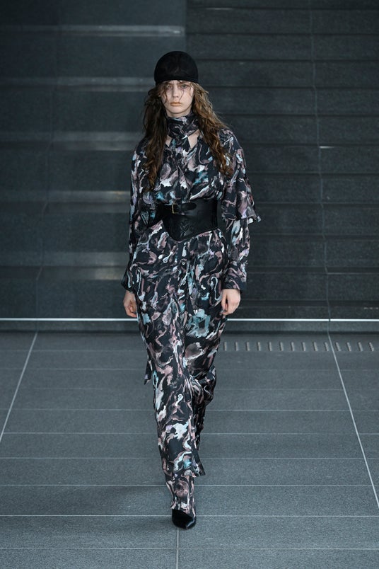 植物図鑑「芸術の原型」から着想を得たジャケットは、図鑑で植物を拡大撮影するために改造されたレンズをのぞく視点を、スラックスは蕾をイメージしたフォルムをそれぞれデザインに反映しました。植物の形状やディテールを独創的に表現し、遊び心とエレガンスを体現しています。