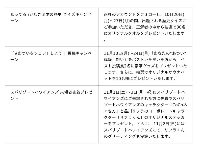開催場所:両社のXアカウント、スパリゾートハワイアンズ