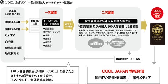 概 要:一般社団法人クールジャパン協議会が公募を行い、全国から応募された作品などを特別審査員含む外国人審査員100人が選定し、「COOL JAPAN」な作品を発掘・認定・発信。