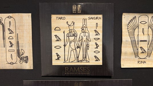 パピルスにヒエログリフで名前を印刷して、特別な記念に。