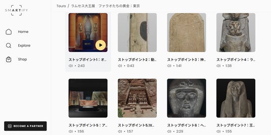 アプリをダウンロードして、作品の映像や音声解説で展示を事前に楽しむことができます。