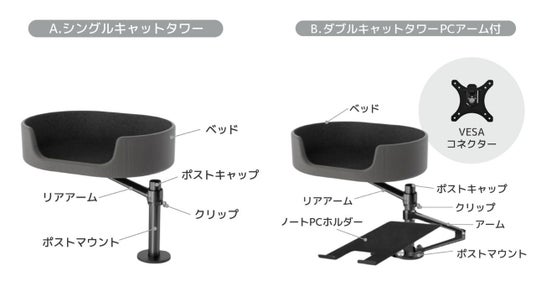 在宅ワークがもっと快適に!猫好きのための新発明『デスク取り付け型キャットタワー』新登場