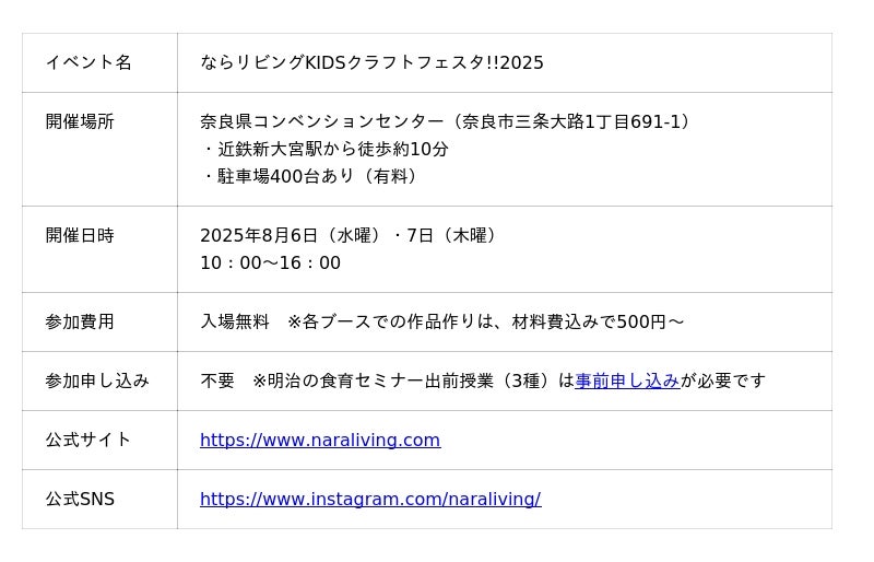 【8月6・7日、入場無料】夏休み特別手作り体験イベント「ならリビングKIDSクラフトフェスタ!!2025」を奈良県コンベンションセンターで開催♪事前申し込みで、親子で楽しく学べる食育セミナーも。