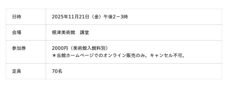 当館ホームページ<イベント情報」>の各申込フォームから参加をお申込みください。いずれも受付開始は10月21日(火)午後1時です。参加は無料ですが、美術館入館料が必要です。講演会「伊勢物語の美術を彩る業平の恋と歌」