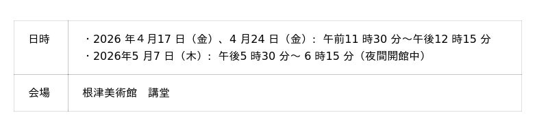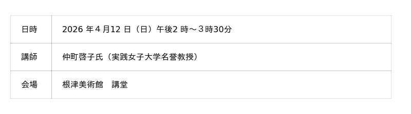 いずれの催事も、当館ホームページ<「イベント情報」>の各申込フォームから参加をお申込みください。受付開始は2026年3月31日(火)午後1時です。1.講演会「光琳の風にのって」