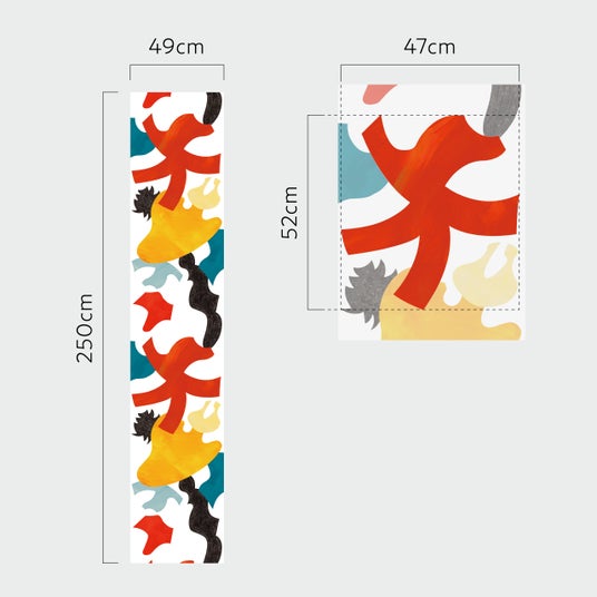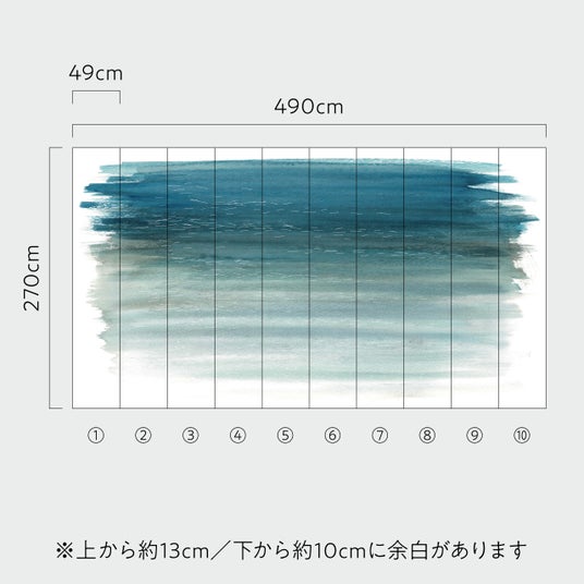 高さ270cmの壁紙10枚で1枚の壁画が出来上がります。1パネル単位でご購入いただけますので、壁のサイズに合わせて、1~10番からお好きな連続したパネルをお選び下さい。選んだ箇所によって空間の印象が変わってくるのが特徴です。