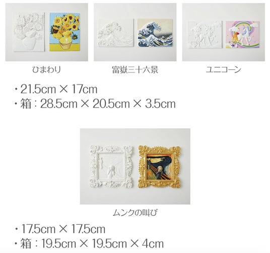 この度、名画ゴッホ『ひまわり』や『ムンクの叫び』などの名画、動物などを立体にしたアートキットを特別販売します。多くの美術好きのために、最初で最後かもしれない<感動体験>を提供します。