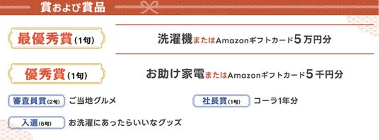 最優秀賞(1句) 洗濯機 または 5万円分のアマゾンギフト券