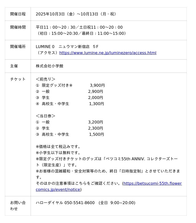 ◼︎イベント特設サイト :https://betsucomi-55th.flowercomics.jp/event