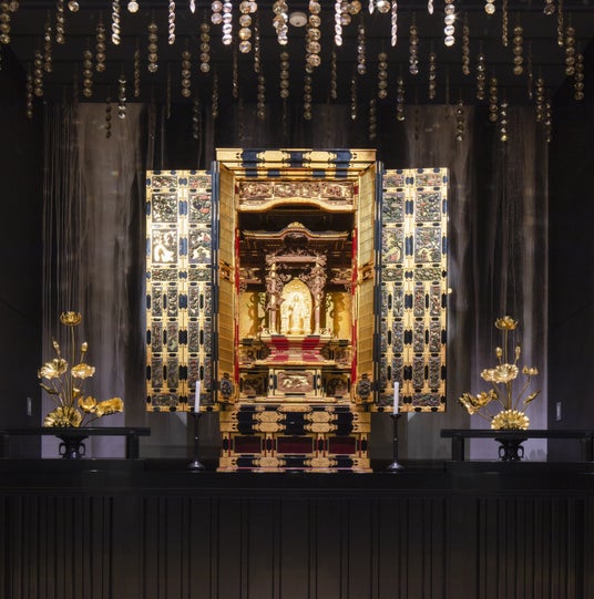 今回の仏像展会場となる念仏堂は 2013 年に建築され、2016 年度グッドデザイン賞を受賞した。日本画家の石踊達哉氏の天井画や千住博氏の壁画を始め、建築自体にも文化芸術を大いに感じることができる。山門の「仁王像」をはじめ、「前立秘仏一光三尊阿弥陀如来像」や「地蔵菩薩像」など、佛師 村上清の諸仏像が境内に点在している。また、千葉県市川市国府台には市川別院が、千葉県八千代市上高野には八千代別院がある。佛師 村上清作の仏像としては、市川別院に「本尊阿弥陀如来像」「観音菩薩半跏像」「勢至菩薩半跏像」の三尊などが、八千代別院に「阿吽供養菩薩像」や「釈迦如来倚像」などがある。今回の展覧会では、こうした各別院にある佛師 村上清製作の仏像も多数展示する予定。