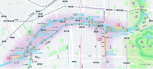 大阪府・大阪市では、大阪・関西万博開催時に水都大阪の魅力を国内外に向けて発信するため、水と光のシンボルである中之島・水の回廊(都心部)と万博会場(ベイエリア)を結ぶ「水と光の東西軸」の3か所で、船上から楽しめるウォーターショーやプロジェクションマッピングなど、水と光を活かした魅力的なコンテンツを実施しますので、お知らせします。