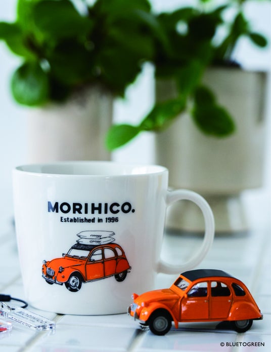 北海道の伝説的なコーヒーブランドMORIHICO.は、代表の市川草介氏により古民家をリノベーションし1996年に創業。当時、コーヒー豆を運んでいたフランスのクラシックカー「CITROEN」をモチーフにしたアートとのコラボレーション。
