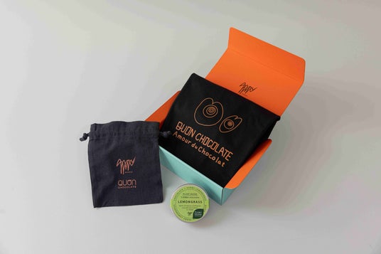 JR名古屋タカシマヤ『アムール・デュ・ショコラ』にて、momijiオリジナルTシャツとQUONチョコレートプラントベースアーモンドチョコレートの限定セットが登場!