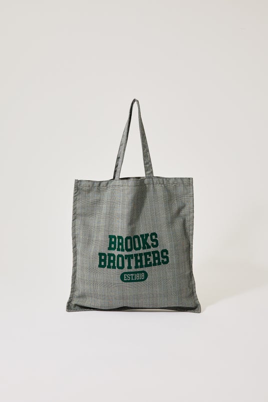 トラッドな印象のグレンチェック柄に、Brooks Brothersのロゴがプリントされたトートバッグ。内側には小物の収納に便利なポケットもあり、マチがなくすっきりとしたデザインです。柔らかい生地感で縦にA3サイズが入る大きさなので、お仕事用のサブバッグとしてやエコバッグなどの用途にもお使いいただけます。総柄なので、シンプルなコーディネートのアクセントとしておしゃれなお母さんへの母の日ギフトにもぴったりです。