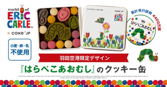 ケーキ・スイーツ専門通販サイト「Cake.jp(ケーキジェーピー)」を運営する株式会社Cake.jp(本社:東京都新宿区、代表取締役:高橋 優貴)は、絵本『はらぺこあおむし』(作・絵/エリック・カール、出版社/偕成社)とコラボレーションしたオリジナルクッキー缶の羽田空港限定デザインを販売開始いたします。