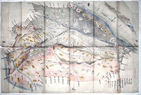 『新編立川市史 資料編 近世2』表紙:近世前期の砂川村の絵図(部分、砂川家所蔵)