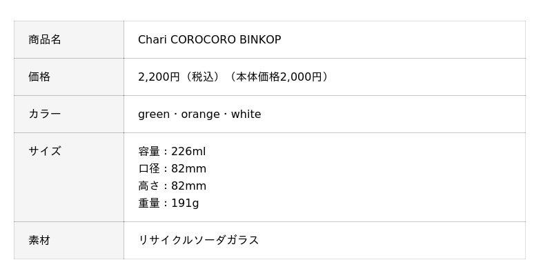 大川硝子工業所の「BINKOP」は、使用済みガラスびんを粉砕・再利用して製造された、日本製のリサイクルガラスコップです。資源循環と自然環境への配慮を両立した製法が特徴です。