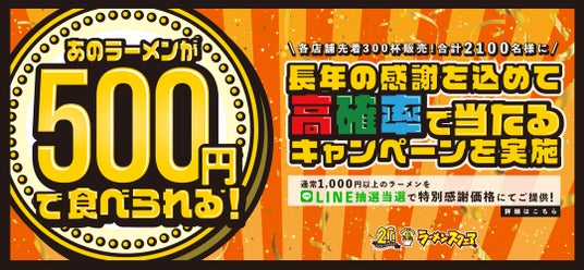 3. 当選者にはその場で「20周年記念500円ラーメン」クーポンを発行