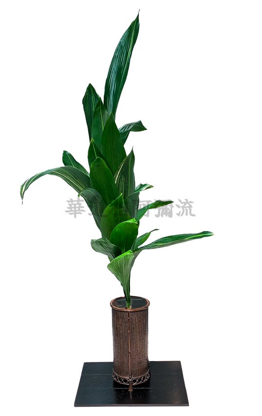 相阿彌流家元・横地画抱による葉蘭の作品例。葉によって様が魚鱗の陣・鶴翼の陣の入り乱れる様を表現する無二の造形技法を誇る。