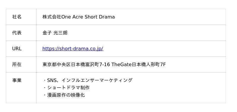 ◆ 株式会社One Acre Short Drama会社概要