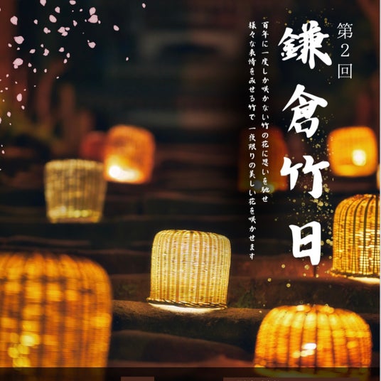 第2回目となる今回は桜の季節。100年に一度咲くといわれる竹の花に思いを馳せて、様々な表情をみせる竹アートで“竹の美しさ”を表現します。夜の部(17:00~19:00)ではライトアップされ、春を迎えた鎌倉の夜をやさしく彩ります。