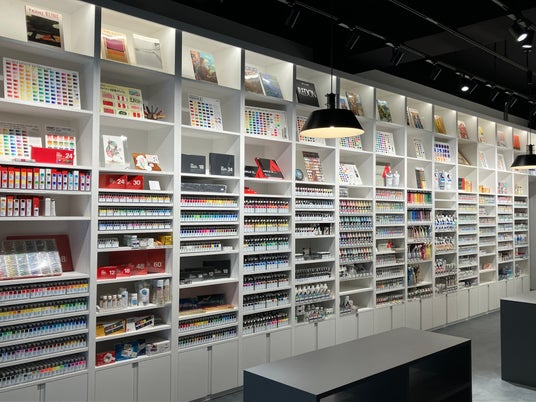 画材ショップでは常に製品のお試しができ、相談しながら気に入った製品をご購入いただけます。