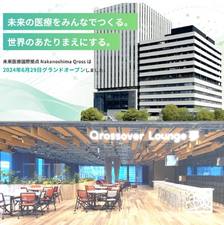 未来医療国際拠点 「Nakanoshima Qross」について未来医療国際拠点「NakanoshimaQross」は、 2024年6月にオープンした医療機関と企業、スタ ートアップ、支援機関等が集積することを特徴とした、他に類を見ない未来医療の産業化拠点。