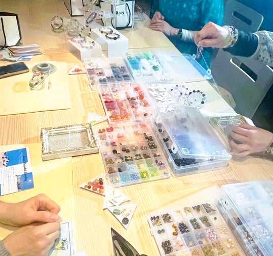 ワークショップの開催について【Merci Bracelet Jewelry~メルシーブレスレットジュエリー】のブレスレットを作るワークショップは、2025年3月から毎月1回開催予定です。一日中パソコンやスマホに向き合うオフィスワーカーの方々にデジタルデトックスしていただき、天然石のひんやりとした感触や美しい色・輝きに触れることで、自然と“心が落ち着くひととき”をお楽しみいただけます。その他、さまざまなビーズもご用意いたしております。知識や技術は不要なので、初めての方でも安心してご参加いただけます。4名以上の参加者が集まれば、開催場所の都合が合う場合に限り、ご希望の日時で開催することも可能です。お気軽にお問い合わせください。