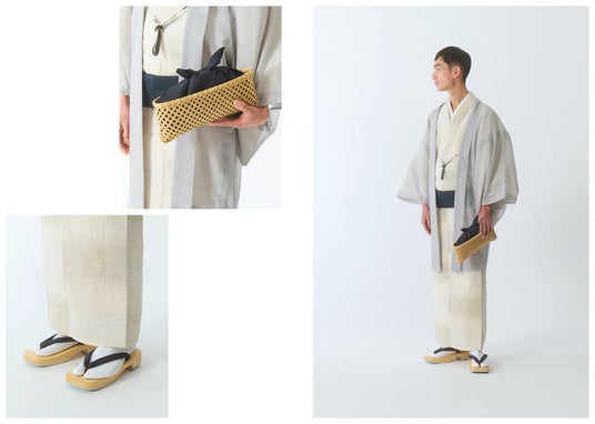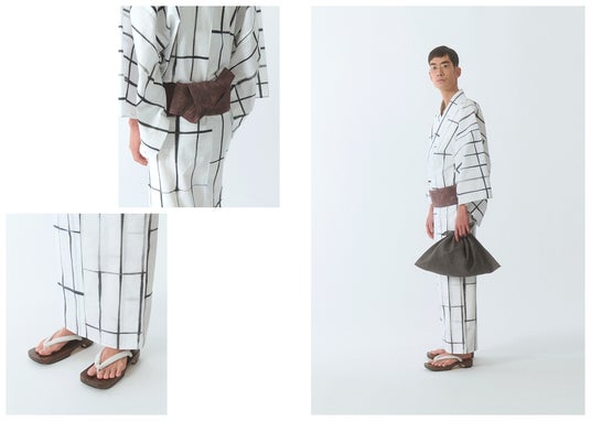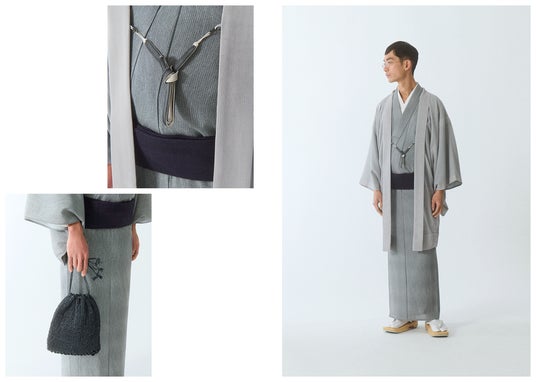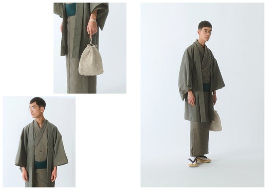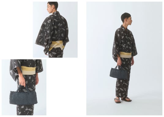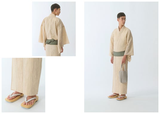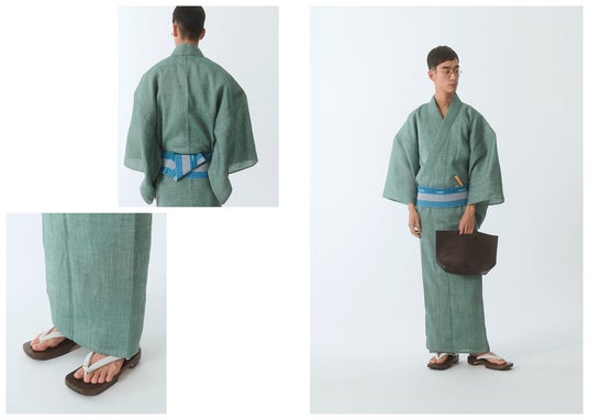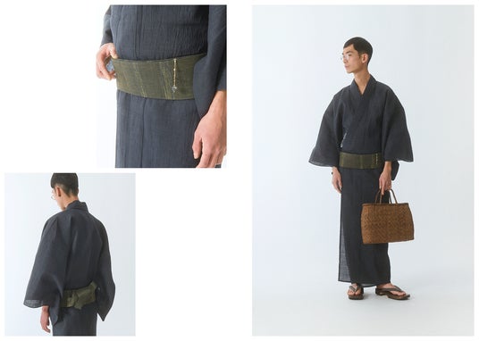ゆかた:刺し子ゆかた 灰緑 / 価格 47,300円 角帯:桐生 麻 角帯 / 価格 16,500円