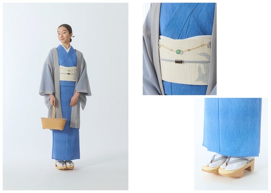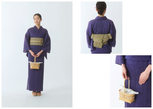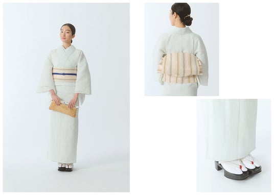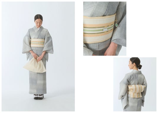 夏きもの:近江縮 縁色(ゆかりいろ)/ 価格 68,200円 半巾帯:Textile COCOON 草いきれ / 価格 209,000円