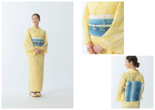 ゆかた:板締め絞り 檸檬 / 価格 79,200円 帯:竹富ミンサー八寸帯 / 価格 110,000円