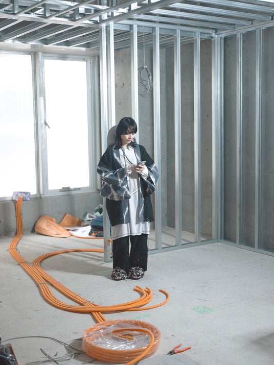 日々の暮らしがソースとなり、『既にあるもの』の価値観を更新/問い直す作業から浮かび上がる服。『服を着る行為』『服を売る行為』を掘り下げ、独自の答えを導き出しています。