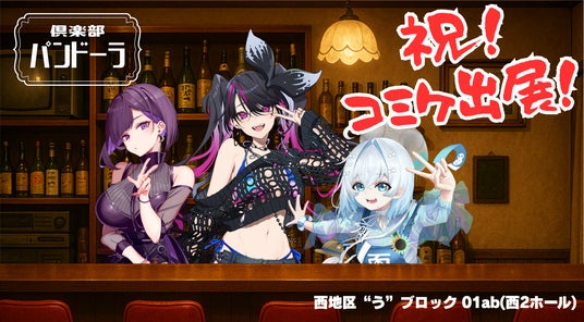株式会社PANDORA(本社東京都渋谷区、代表取締役:宮瀬卓也/和泉義博)は、2025年8月17日(日)に開催される「コミックマーケット106」に、XTuberとして活動する、咲田ゆな/夏乃音ユキ、橘舞/夷振えの、霜月めあ/音零くじら が登場することをお知らせします。