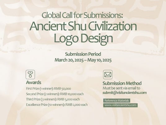 応募作品には明確な要件があります。応募作品は三星堆遺跡と金沙遺跡の要素を取り入れ、古代蜀文明の独自の文化的価値と重要性を強調する必要があります。デザインは国際的な視点、中国の文化的美学、巴蜀地方の独特の魅力を反映したものでなければなりません。テーマに合致し、革新的な構成と独自の創造性を備え、視覚的に印象的で、認識しやすく、芸術的に表現力豊かなものでなければなりません。応募作品には画像ファイルとソースファイルの両方が含まれ、300~800語の説明文を添えて、イベント専用のメールアドレスにメールで送信する必要があります:submit@visitancientshu.com.