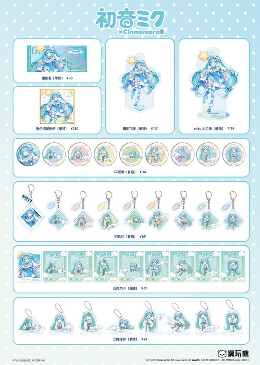 中国・KUMATOYSの全国オフライン店舗にて『初音ミクXシナモロール』新商品の発売が決定!