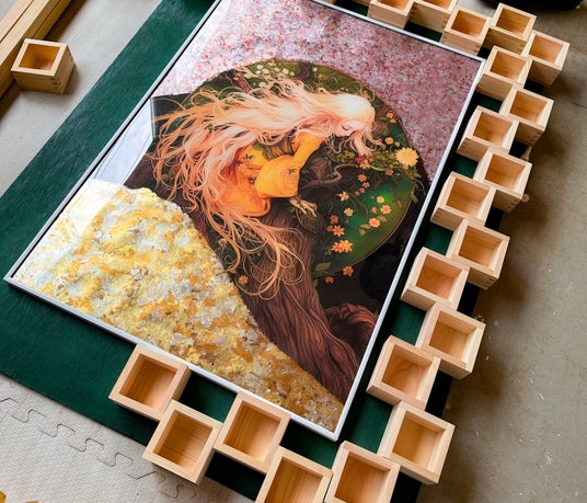 ギャラリーの入り口には、日本の伝統工芸「枡」を用いた「枡ウォール」が設置されています。