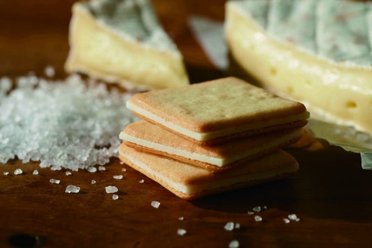 生地に、カマンベールチーズのチョコプレートをサンドしたクッキーです。