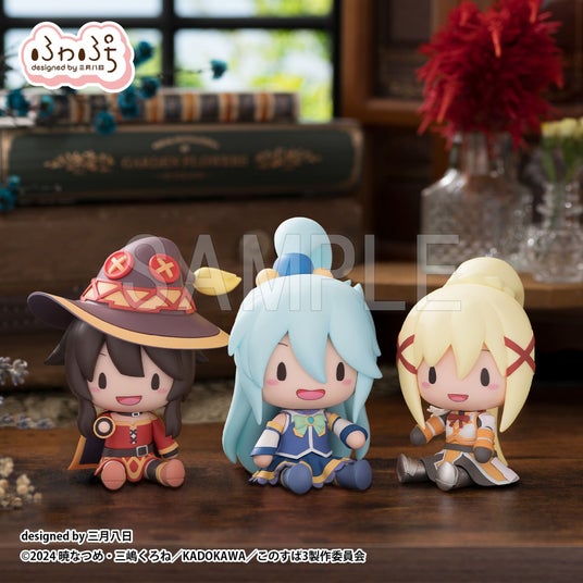 イラストレーター・三月八日さんとの共同デザインブランド「ふわぷち」コーナーでは、手軽に表情やポーズを変えて楽しめるギミックフィギュア「ふわぷち デフォルメフィギュア」から、TV アニメ『この素晴らしい世界に祝福を!3』シリーズをはじめ、初公開となる情報やフィギュアの展示など多数展示予定です。今回はセガプライズやセガグッズで展開中のぬいぐるみシリーズもコーナー内でいっしょに展示予定です。会場でぜひご覧ください。
