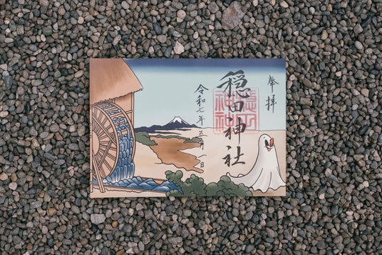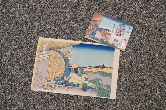 原宿はかつて農村地帯で、今ではキャットストリートの下に暗渠として流れている渋谷川にはたくさんの水車がありました。実は、かの有名な葛飾北斎の富嶽三十六景でも「隠田の水車」というタイトルで浮世絵が描かれています。本企画では、今までもこれからもこの地で繋がってきた人々を結び続けたいという思いから、アートワークの題材にこちらの浮世絵を採用。詳細は、穏田神社宮司の船田睦子氏、矢入幸一氏、御朱印ガールの野村萌々の対談記事でご覧いただけます。