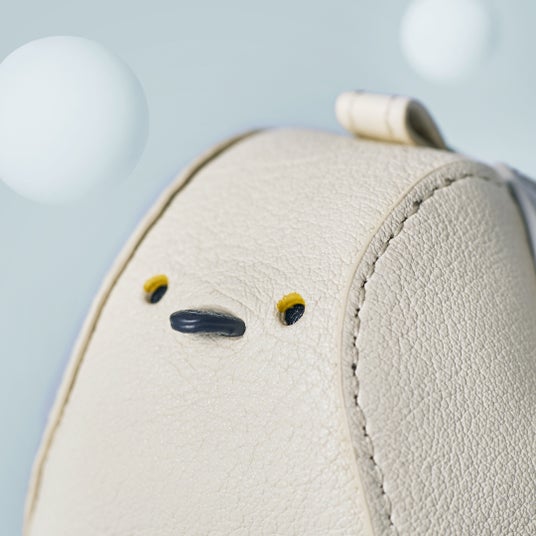 かわいらしい姿から「雪の妖精」とも呼ばれる、まるで雪玉のようなまん丸なフォルムをポーチにしました。