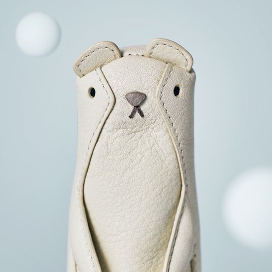 レザーで仕立てた鼻や縫いで仕上げた口元など、細かな顔のパーツでその愛らしい表情を表現しています。 さらに、耳の生え方や頭の形、頭の下にあるくびれといった特徴も、職人の手仕事で表現しました。