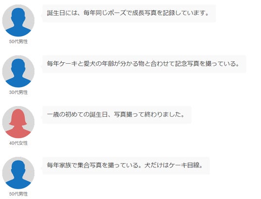 「誕生日ごとに写真を撮って成長の記録を残している」という飼い主さんも多く見られました。