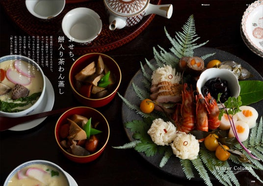 九州のおせちには欠かせない「がめ煮」、田中雪絵さんの祖母の故郷・福岡の郷土食「餅入り茶わん蒸し」もご紹介しています。