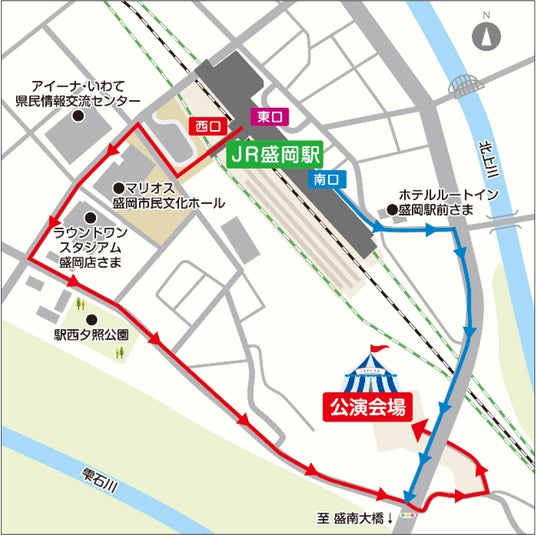JR盛岡駅【南口】または【西口】からのアクセスMAPを参考にご来場ください。