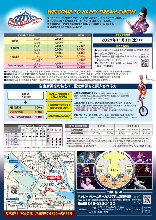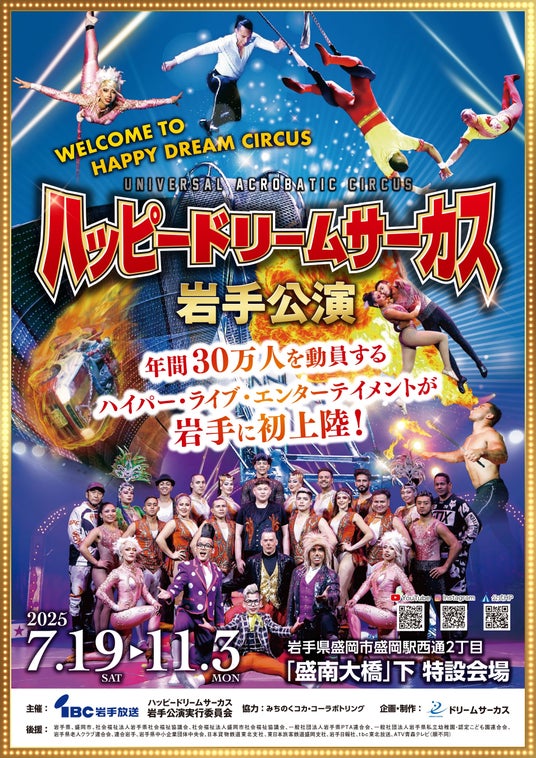 「ドリームサーカス」は「木下大サーカス」「ポップサーカス」と並ぶ日本3大サーカスのひとつ。「ハッピードリームサーカス岩手公演」を2025年7月19日(土)から11月3日(月・祝)まで開催いたたします。今回東北では初開催で、岩手県でのサーカスのロングラン公演はおよそ15年ぶりです。