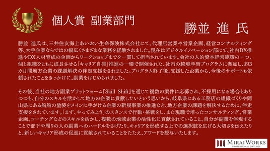 <個人賞(副業部門)> 2名