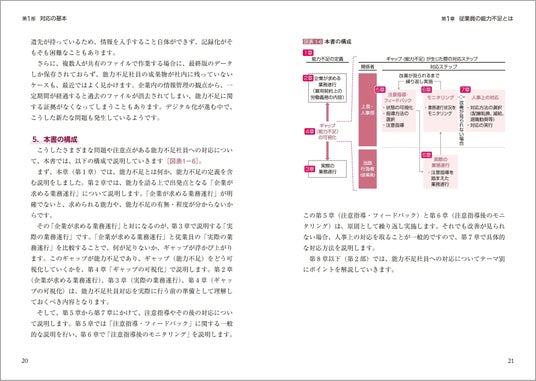 本書では、能力不足(=ギャップ)の可視化から注意指導、人事上の対応までの一連のプロセスを順を追って解説します。紛争への備えとして重要な「可視化・記録化」のポイントも、具体例を用いて丁寧に説明していきます。