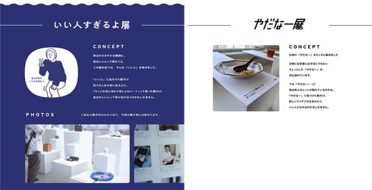 日常に潜むいい人に光を当てた「いい人すぎるよ展」と日常に溢れるちょっとした“やだなー”を集めた「やだなー展」は累計来場者数50万人を動員。(2025年3月時点)
